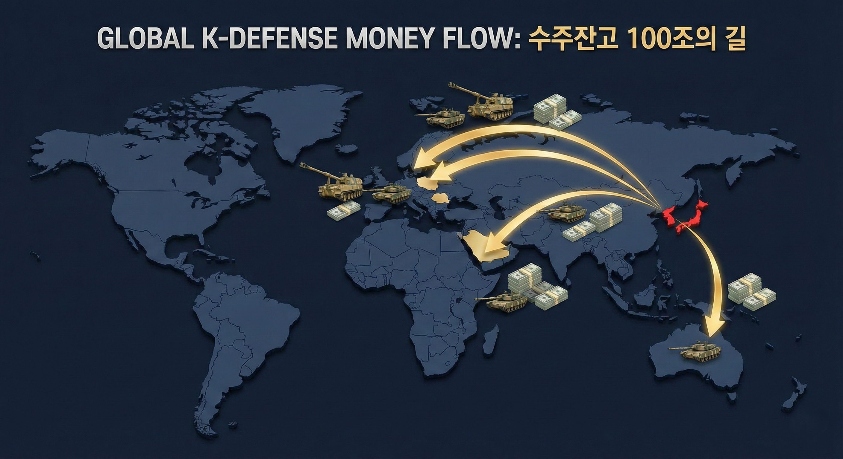 - 숫자: K-방산 주요 4사 합산 수주잔고 약 100조 원 육박, 향후 4년간의 EPS 성장 확정.
